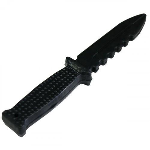 Резиновый нож для тренировок. При всем том тычки даже такой тупой штукой болезненны.
