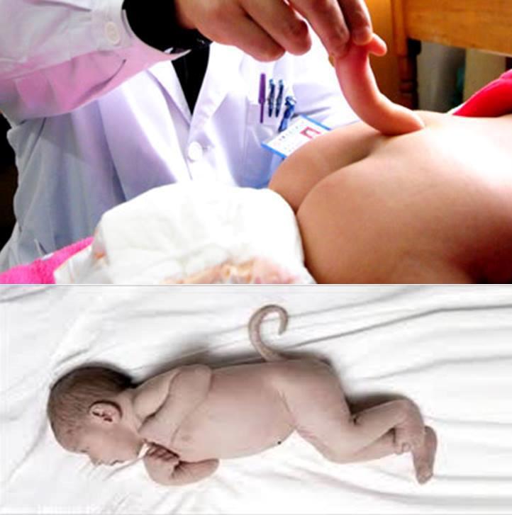 Имеется такой "Атавизм" (появление у данной особи признаков, свойственных отдалённым предкам, но отсутствующих у ближайших) - Хвост.