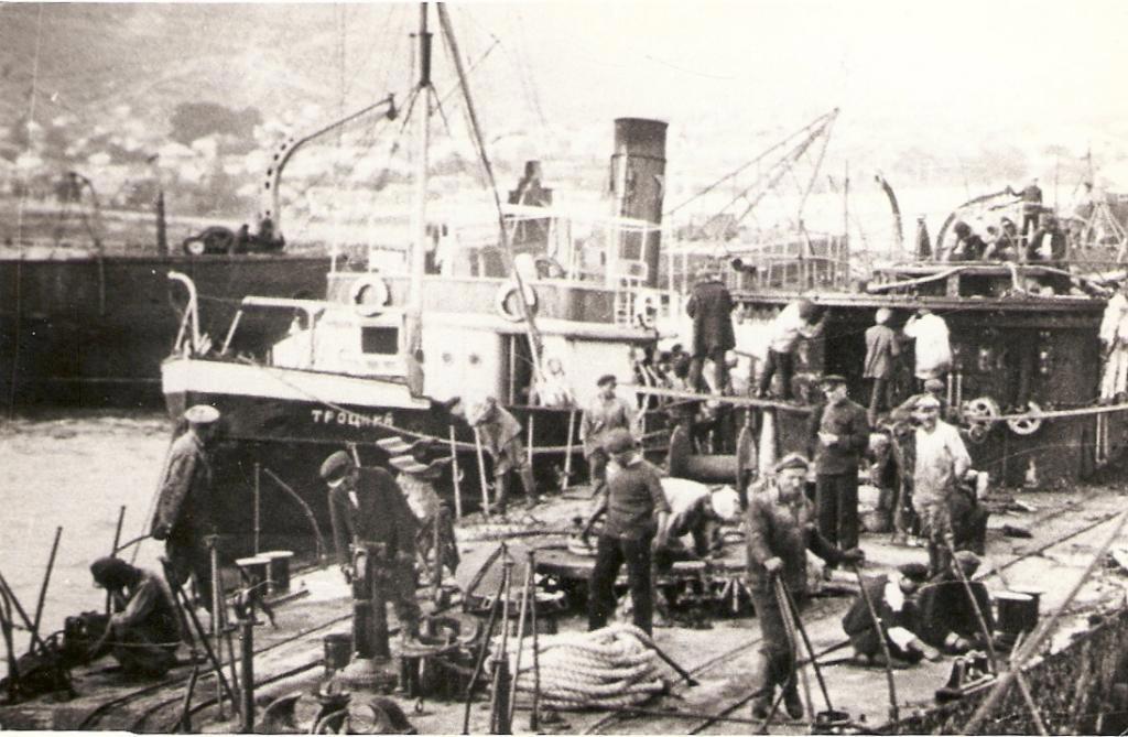Ниже, на первом снимке- буксир "Троцкий"🙂  на подъеме эсминца.
