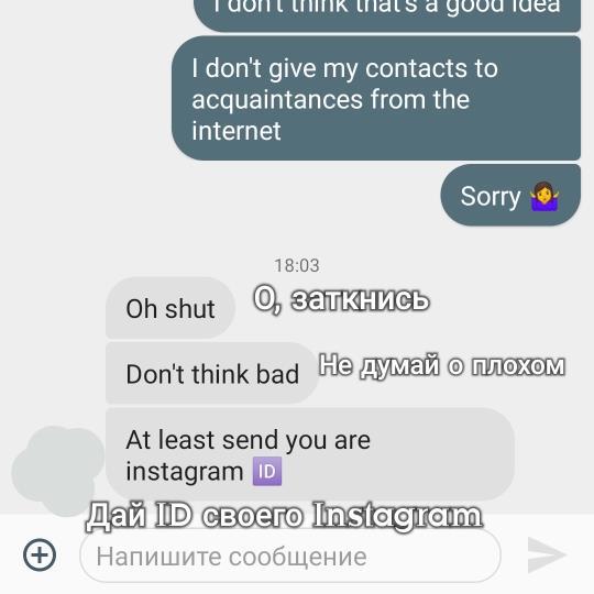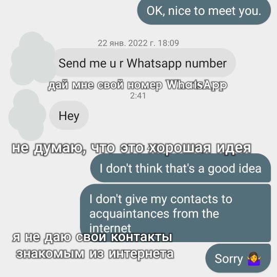 Ха, номер WhatsApp ему! А может, сразу адрес и билет до Уссурийска?