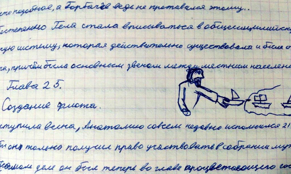 Сдался. Оставив на память две толстые тетради, испещренные мелким текстом, забавными рисуночкам (Пушкин, епта!).
