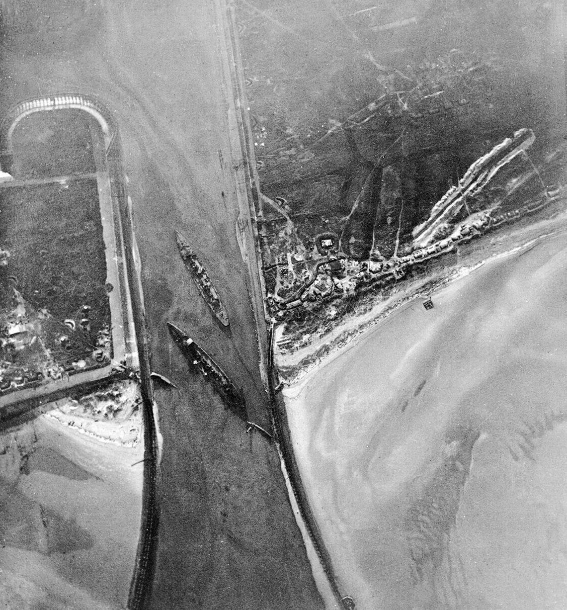 Старые британские корабли, использовавшиеся для закупорки выхода из Зеебрюгге в 1918 году.