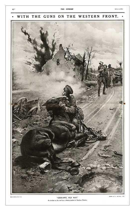 "Goodbye Old Man" - "Прощай, старик". Этот рисунок буквально потряс мир. Смерть на войне - дело обыденное. Смертью человека читателя и зрителя потрясти сложно - на войне люди гибнут сотнями и тысячами, ежедневно и ежечасно. Но, рисунок на котором солдат прощается с умирающим конем, вызвал сильную реакцию - рисунок был растиражирован по все стороны фронта.