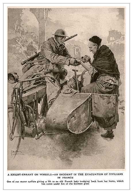 Эвакуация гражданского населения из прифронтовой полосы. Ну или даму наконец прокотят на мотоцикле)))