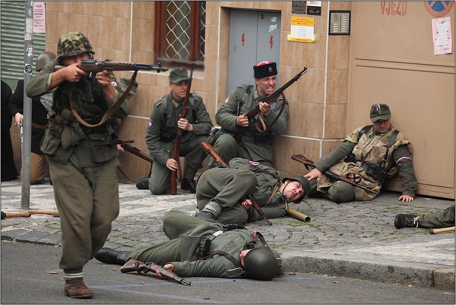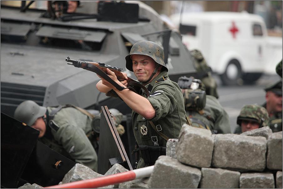 Реконструкция освобождения Праги. Советских естественно и рядом нет. Власовцы атакуют.