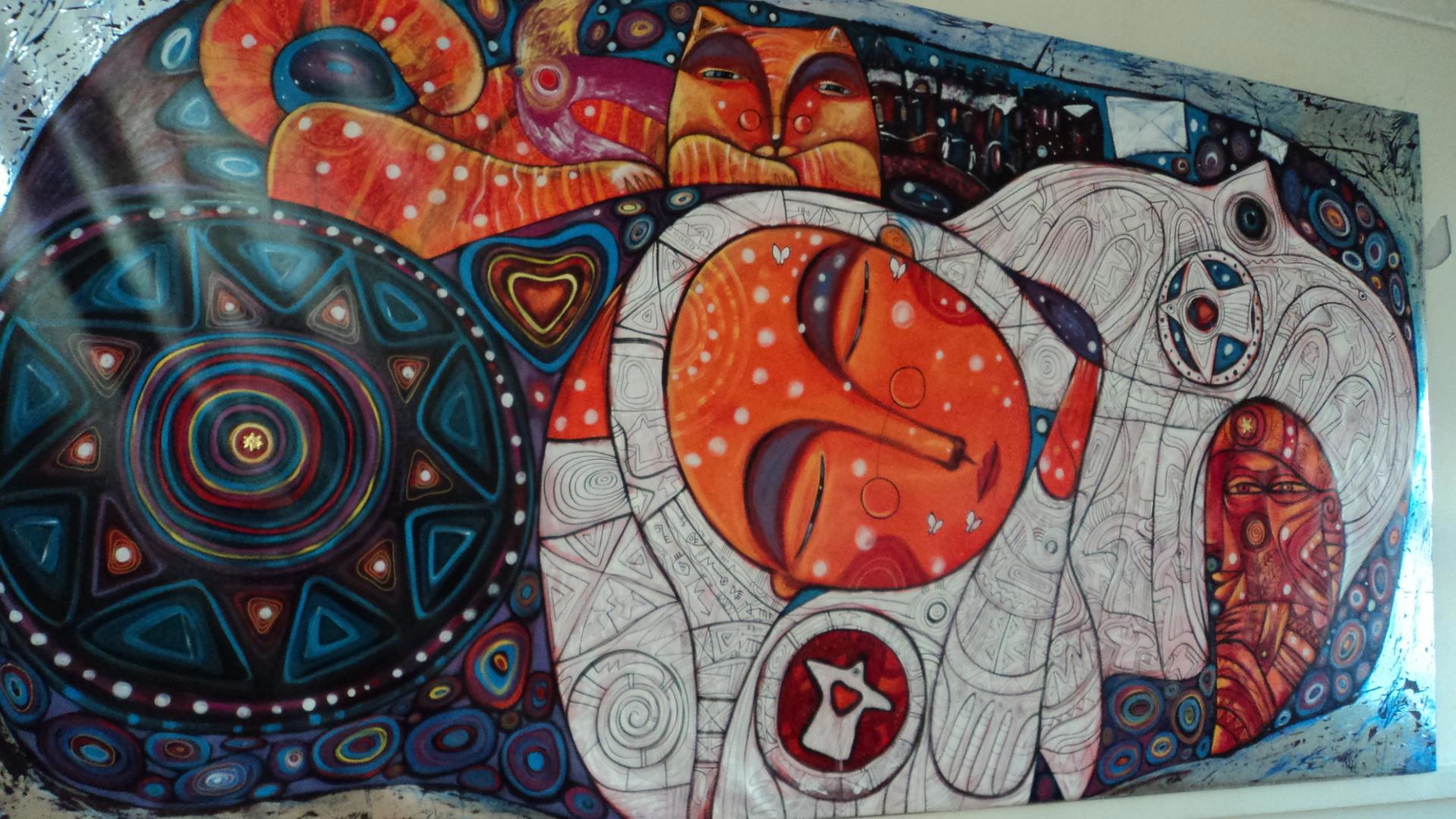 А на одном из этажей, под психоделические скрипы и в полутьме, проглядывались фигуры за полотнищами. Это искусство было настолько «современное», что даже такой человек, как я, не смог восхититься, и написал гневную рецензию в книге отзывов, которая к этой выставке прилагалась :|