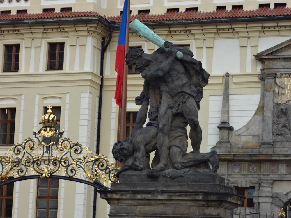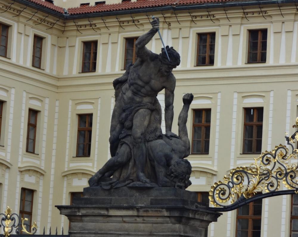 И когда сравниваешь с тем, что делалось раньше - ну наглядно видно кто мастер, а кто фуфло лепит хероватое. Даже при том, что немецкое влияние заметно очень - на что еще Джером К.Джером обращал внимание - что в Германии как ни скульптура - так кто-то кого-то убивает. Вот к примеру у ворот президентского дворца парные статуи: