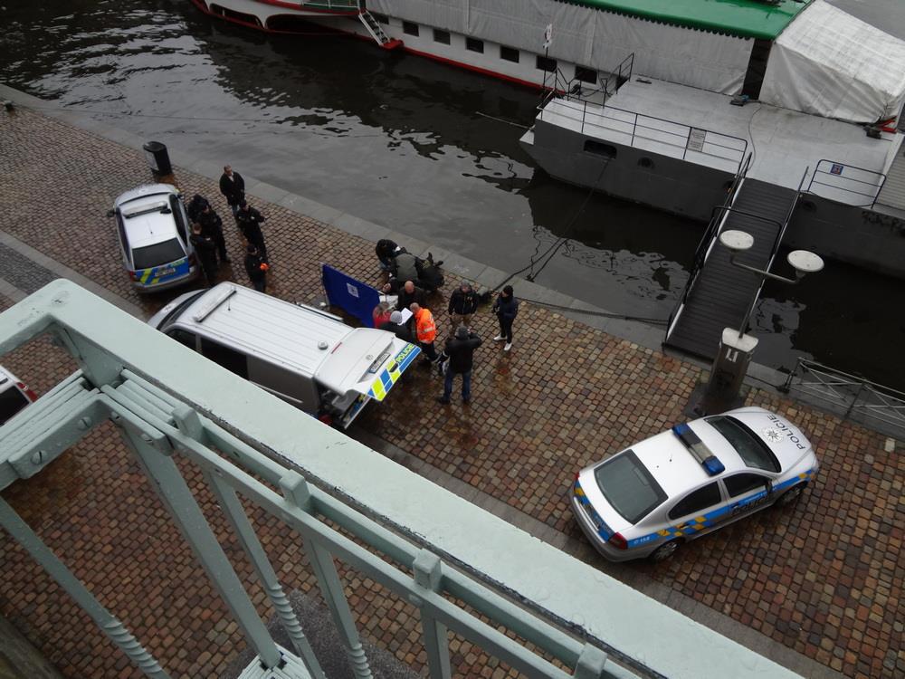 Мы идем себе дальше - оказывается утопленника нашли и выловили и полицаи туда ускакали. А чуть позже узнали мы, недотепы, что как раз в этот день с утречка принят в Праге строгий запрет на кормление птичек - и штрафы за это дикие введены. И полицаи,видать, предвкушали. (Хотя может и наоборот - тянули время, чтобы не мешать, возможно им этот запрет был неприятен - птицы здорово оживляют и реку и город и потому они не рвались штрафовать). В итоге этот парень нас от штрафа спас.