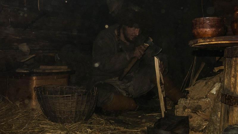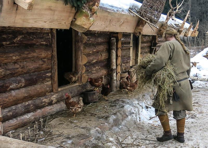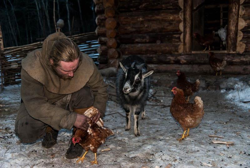 Несколько фото по средневековому деревенскому житию - попалось описания и фото от экспериментатора и реконструктора Павла Сапожникова, который постарался пожить по-человечески в реалиях 10 века (ну такое, имхо, скорее это у него уже 14-16 века реалии получились). Сразу замечу, что человек это был смелый, хотя и постеливший соломки - условия его жизни - это уровень весьма зажиточного крестьянина - дом с пристройками, инструменты - в том числе и стальной топор, масляный светильник, кроме куриц есть и коза, да и одет неплохо.