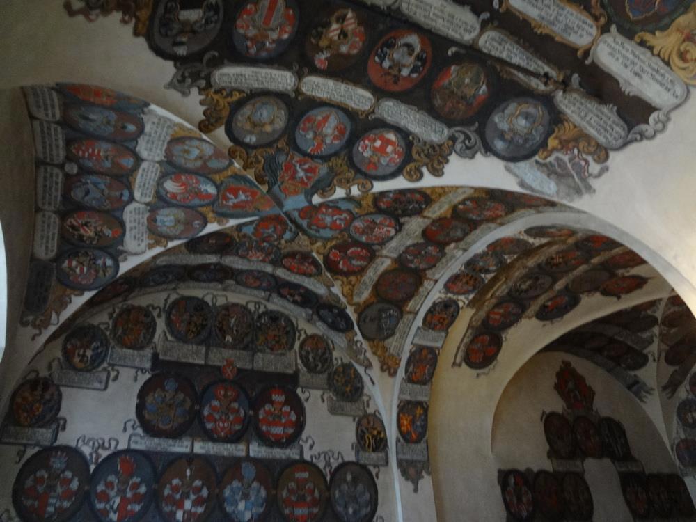 Зал собраний. Потолок. Вот интересно - сколько было интриг за размещение своего герба в козырном месте? Думаю, что не меньше чем сейчас с блатными номерами на авто.