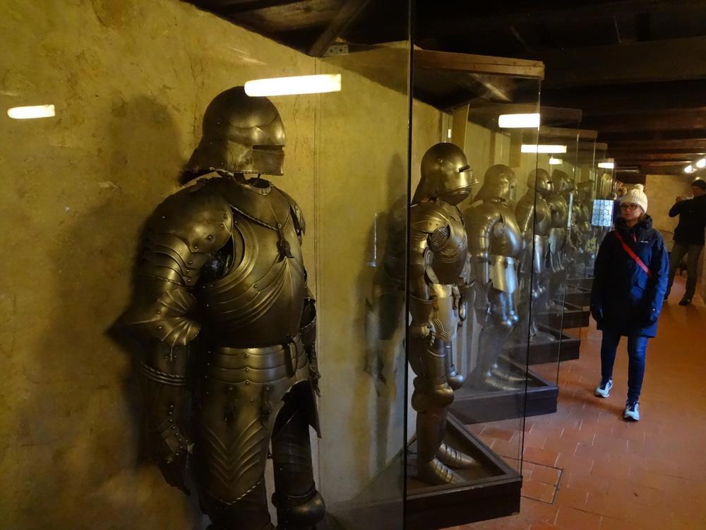 Зато на стене (и в стене - все это под крышей) - здоровенная, как мне показалось музейная экспозиция по средним векам - доспехи и оружие
