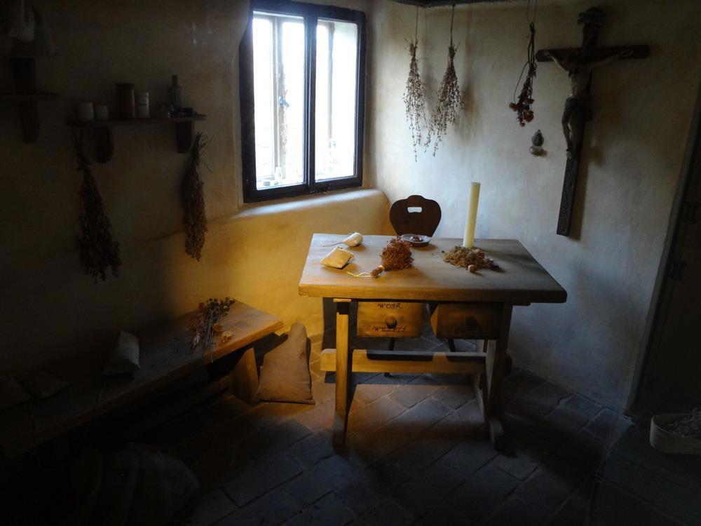 Первоначально - тут жили стражники, охранявшие стены. Комната такового со спальней наверху.