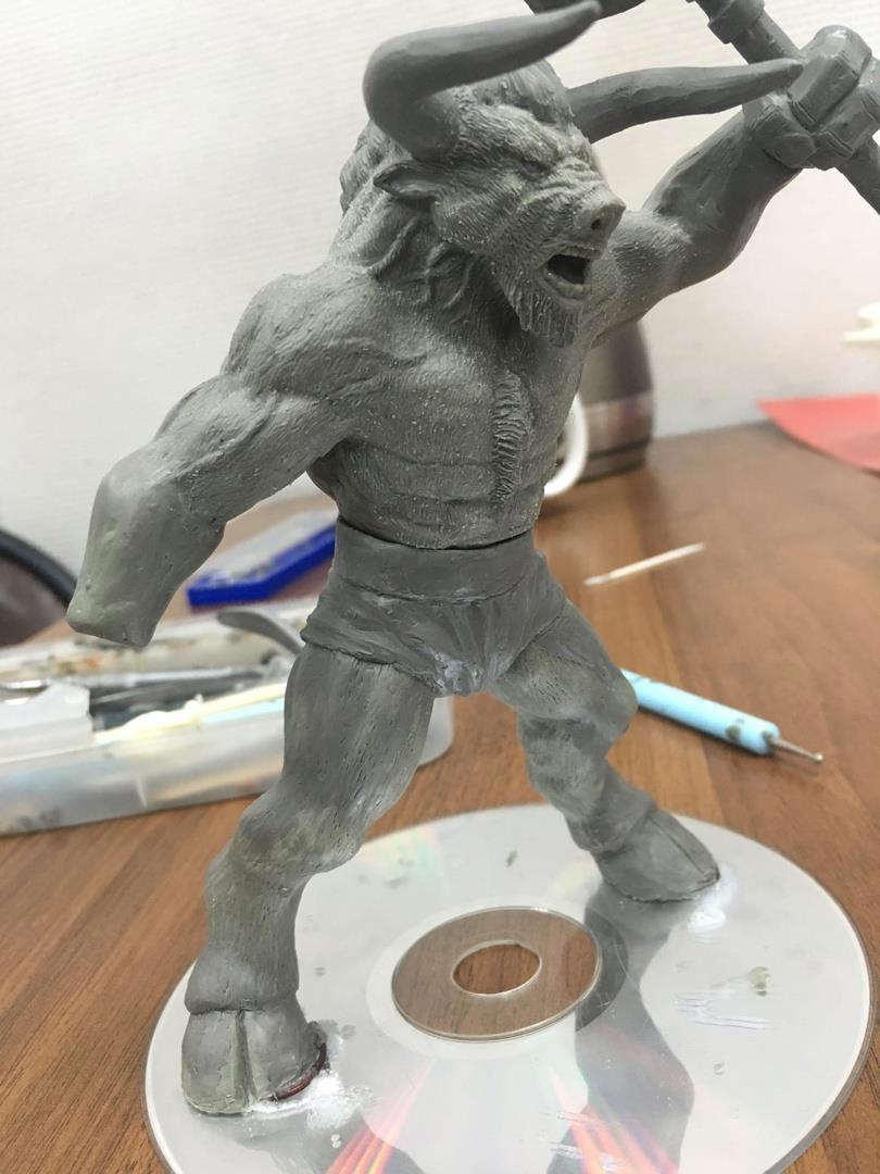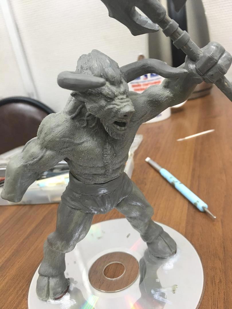 Бычок продолжает обрастать деталями, но я так и не придумал, что помещу в его правую руку. Кстати, подобных рогатых парней вы совершенно точно отыщите на страницах "Сердца Земли". Минотавры не самые однозначные персонажи, но присущая колоритность превращает бычков  в значимые фигуры по любую сторону баррикад.