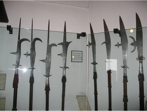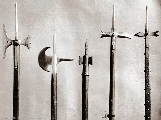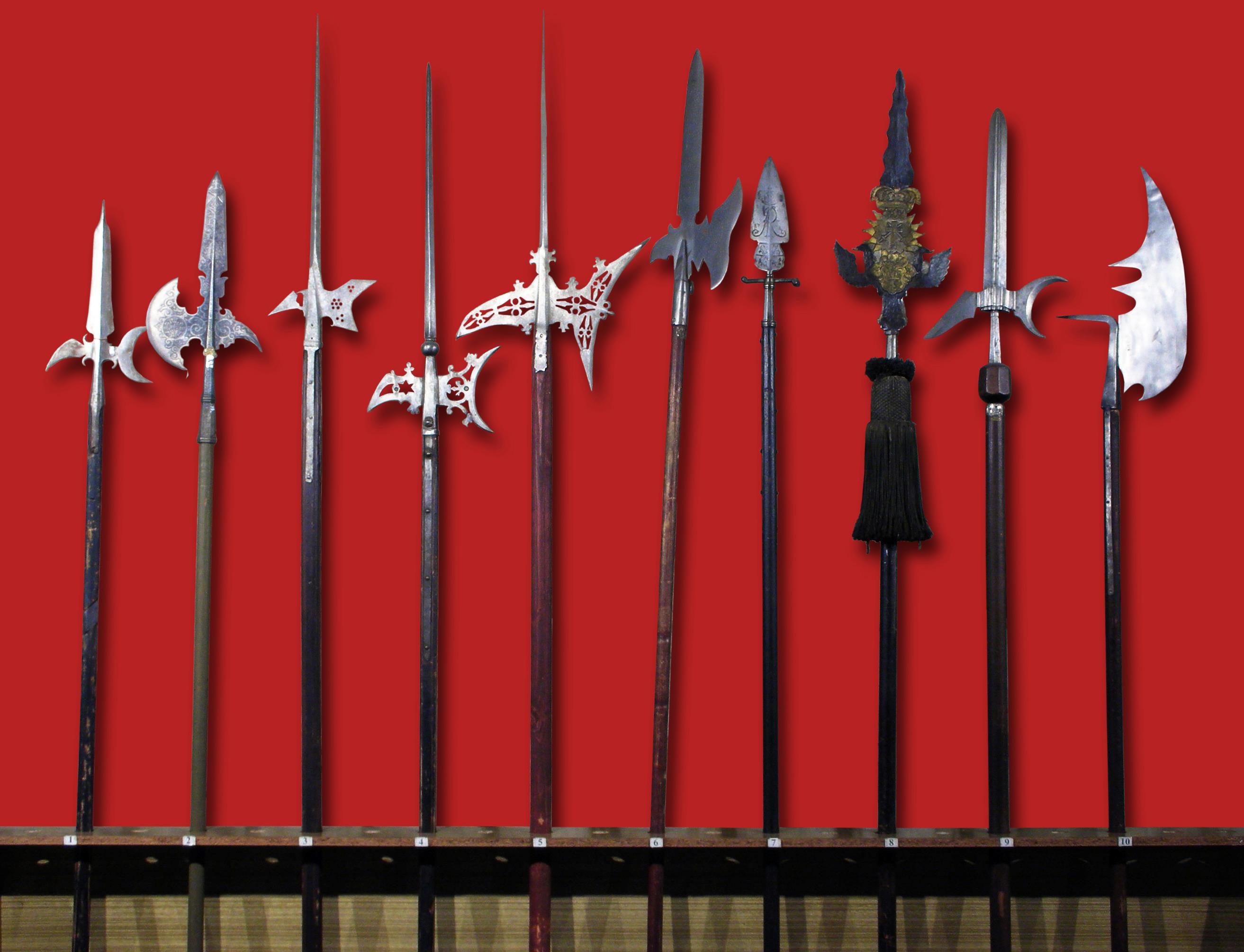 Вот на снимке - 1,2,3,4,5,6, 9,10 - алебарды. Эспантон - 7 Протазан - 8. Причем родство алебарды и протазана видно, как и родство протазана и эспантона (и да - вылитая же рогатина что тот, что этот).