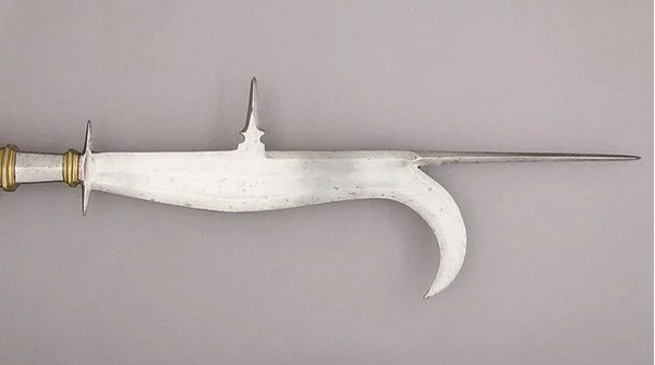 Гвизарма. Вроде как положено острие и крюк - цапать конного рыцаря и стаскивать с седла. Но и рубить можно.
