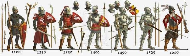 Шпаргалка для понимания развития оружия и доспехов в Европе.