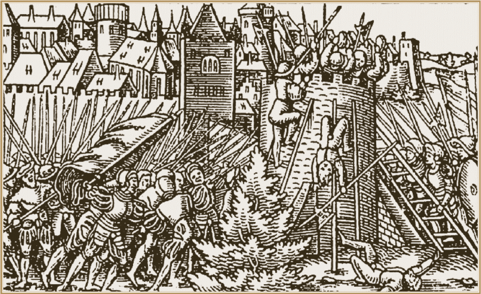 Штурм замка Лаюс. Художник сильно все приукрасил, хотя потери там у осаждающих действительно были страшные.