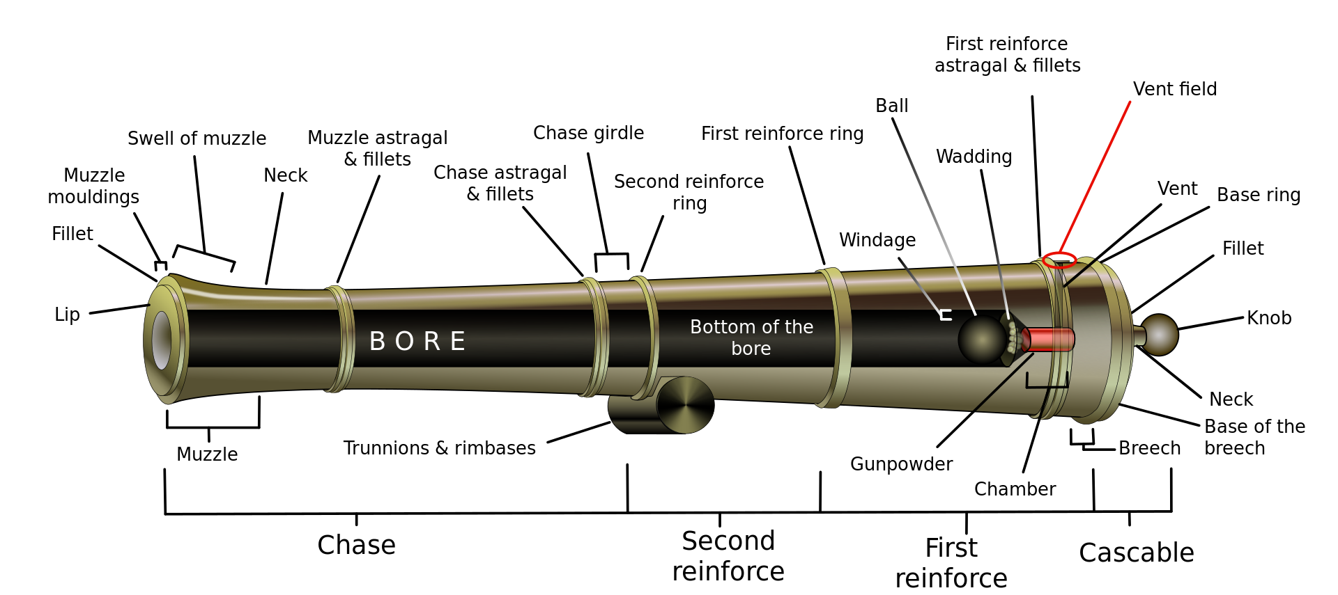 Схема устройства ствола пушки. (Это морская и куда более поздняя - но от 16 века схемы не нашел, извините(((