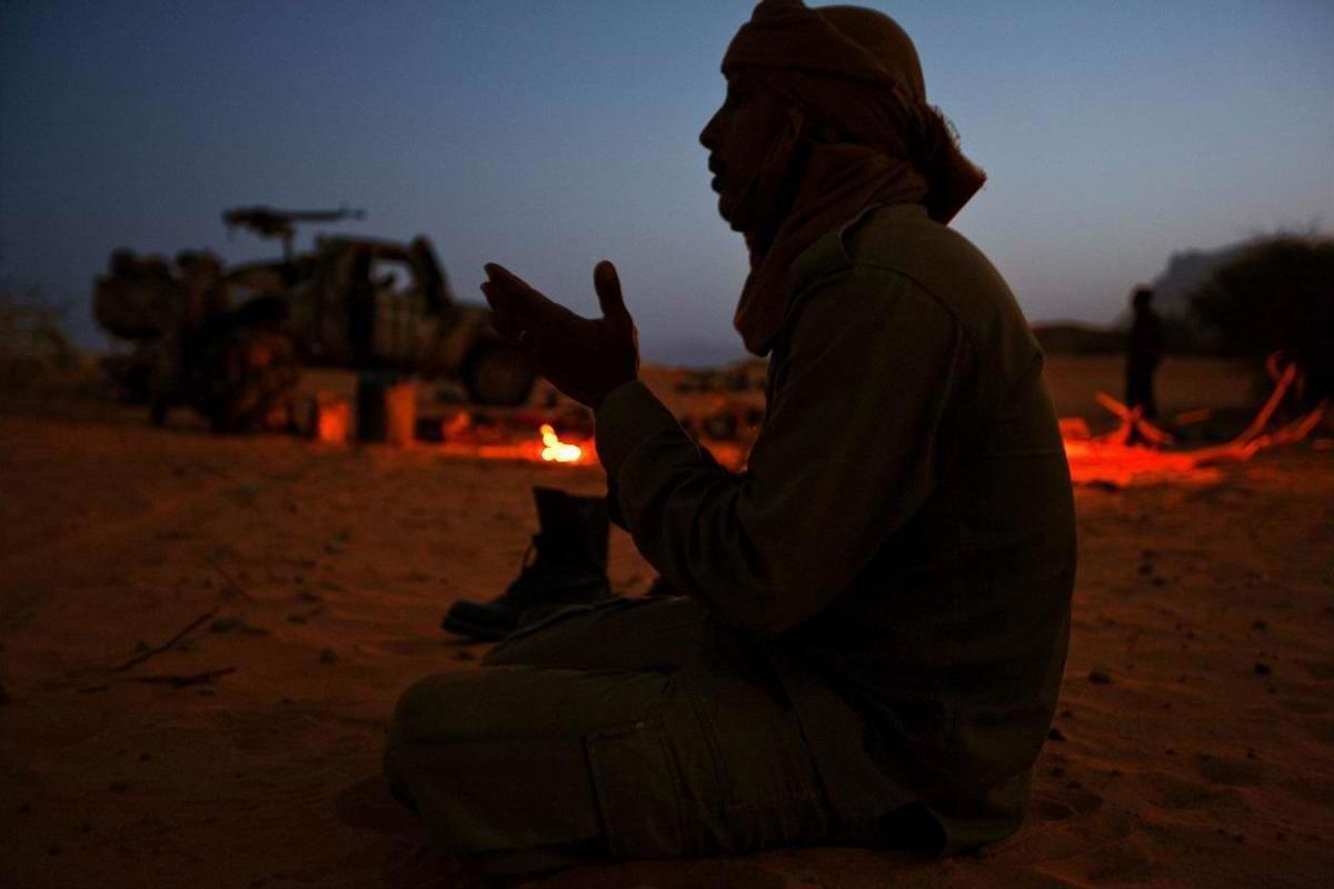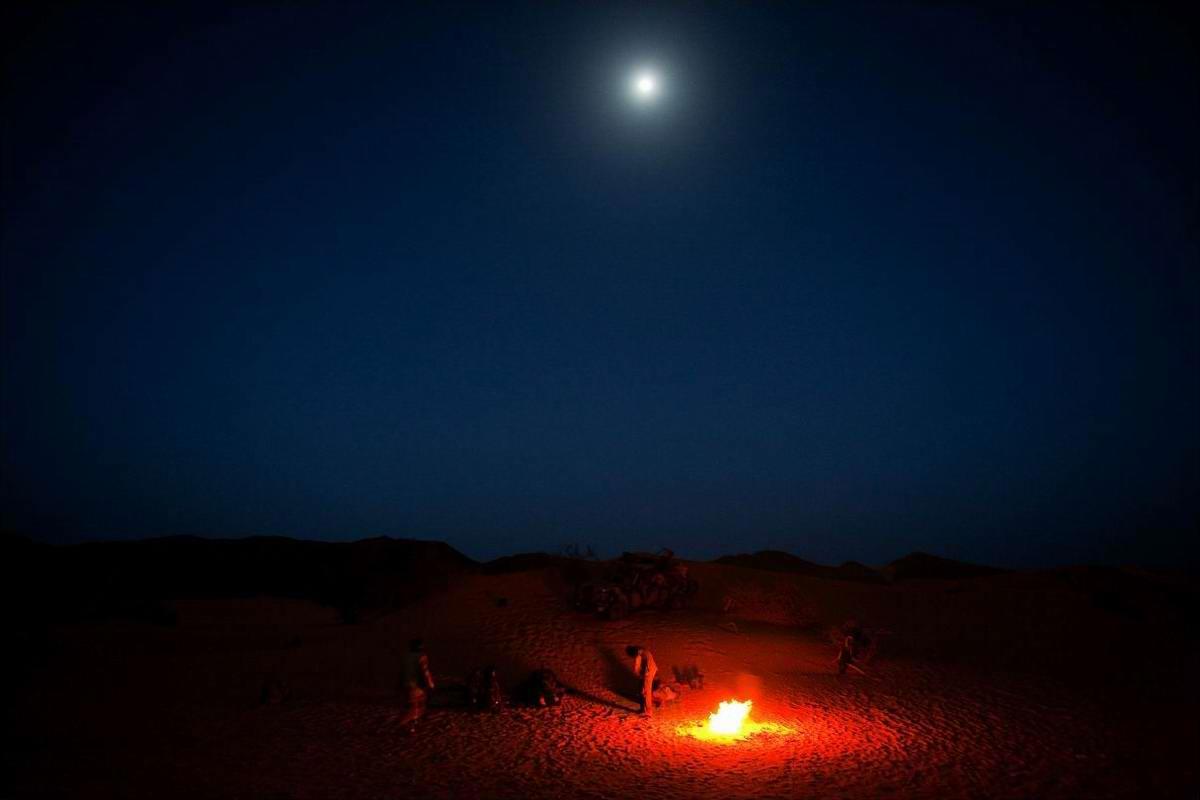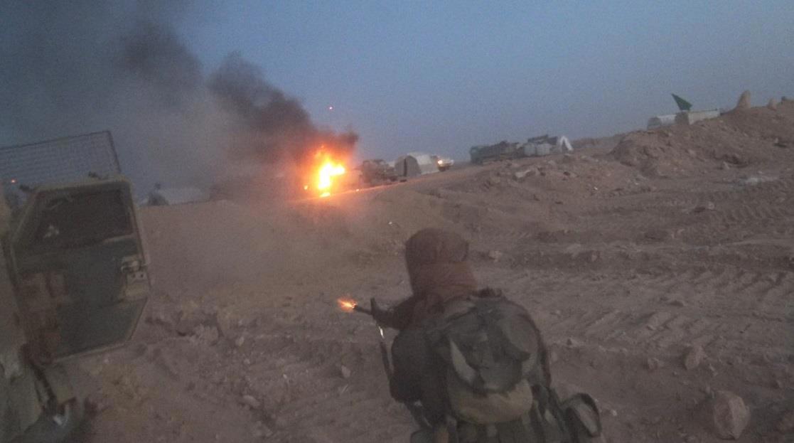 Бой в пустыне ночью.