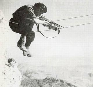 ЕМНИП - наемник из испанского иностранного легиона показывает спсоб и передвижения и стрельбы с проводов. Точнее - они из проводов делали переправу. Я это к тому, что наемник - профессионал ведения войны разными способами. И ему надо воевать все время в отличе от профи-военных, которые большей частью не воюют все же. Потому частенько наемник умеет больше. Кто не умеет - дохнет быстро, огромной армии за спиной у них нету.