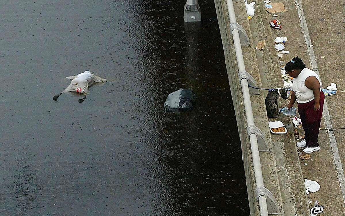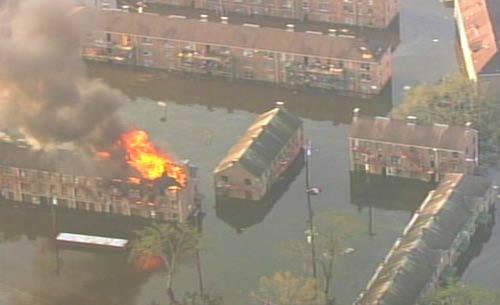 Дамбы  прорвало, и те, кто еще оставался в городе, с машинами или без,  оказались в ловушке. Разумеется, подавляющее большинство из них - нищие,  не имеюшие даже машин. Черное население.