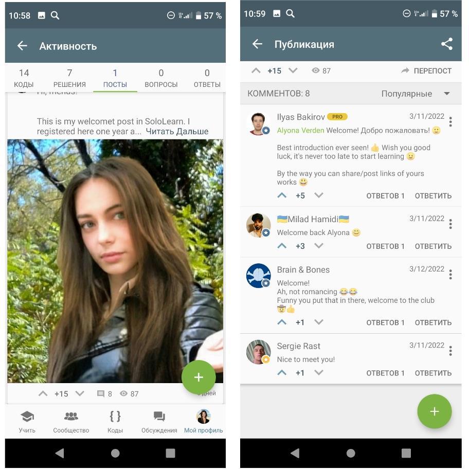 Автор: Alyona VerdenПросто хочу поблагодарить за помощь в написании моего первого поста для SoloLearn.