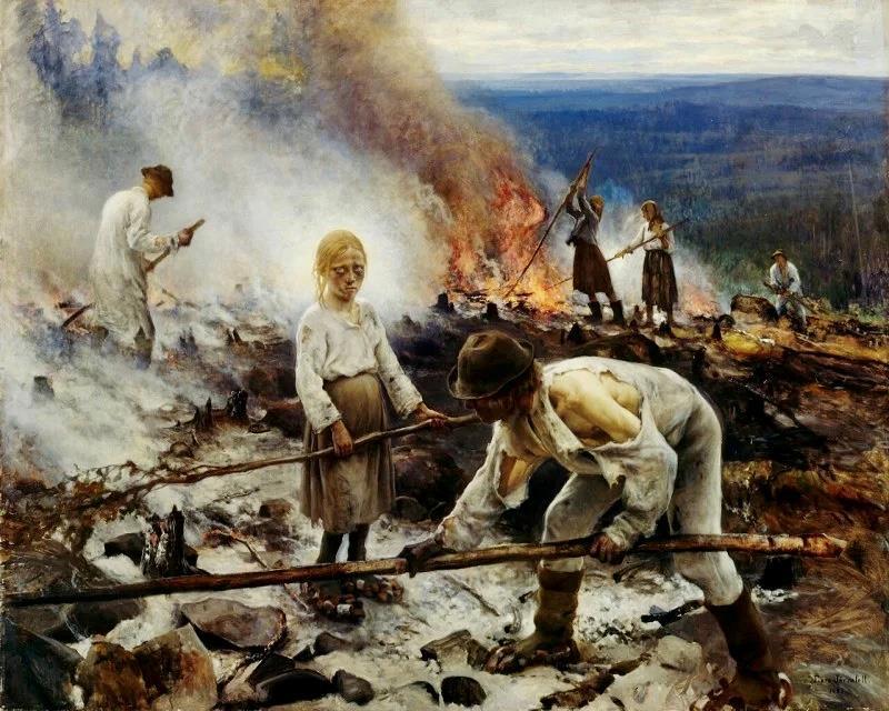 Конец XIX века, ВК Финляндское. Подсечно-огневое земледелие. Художник Ээро Ярнефельт.