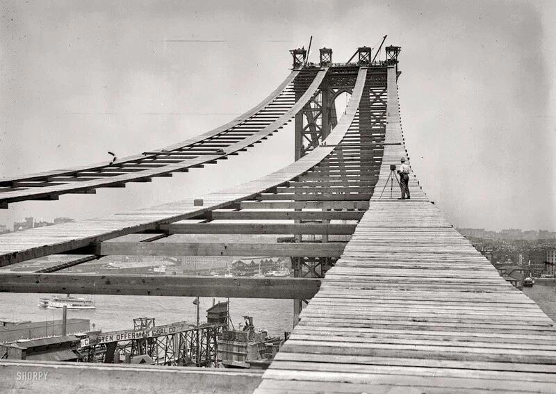15 июля 1908 года, Нью-Йорк. Манхэттенский мост во время строительства.