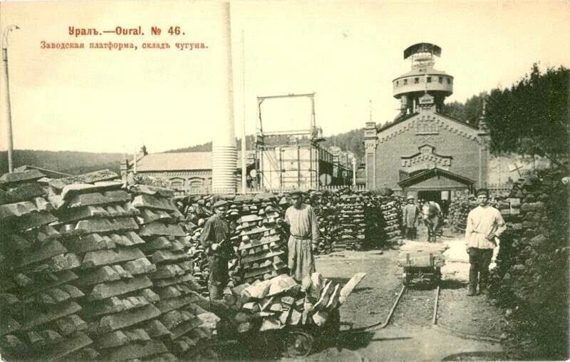 1903 год, Урал. Заводская платформа, склад чугуна.