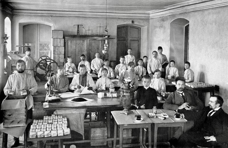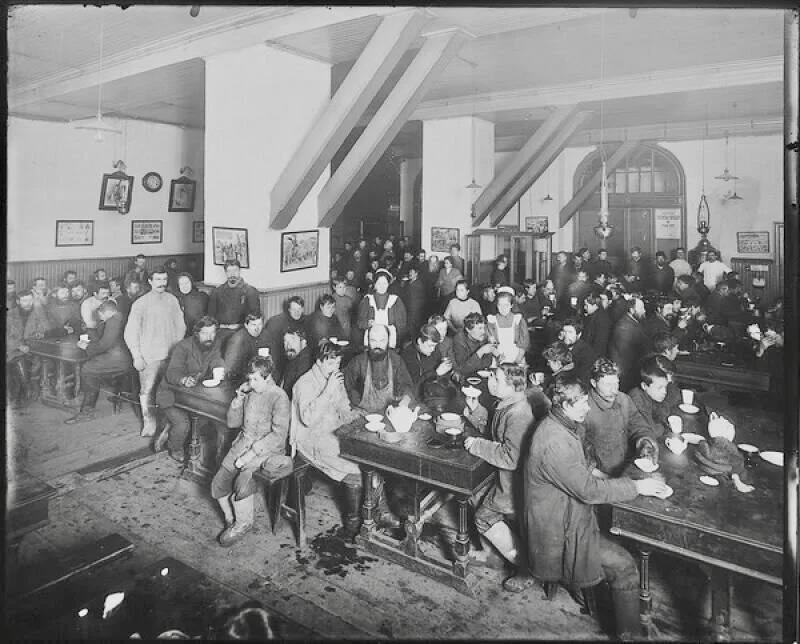 Ноябрь 1909 года, Санкт-Петербург. Столовая в гостинице для рабочих, устроенная городским Попечительством о народной трезвости в помещении бывшего Стеклянного завода.
