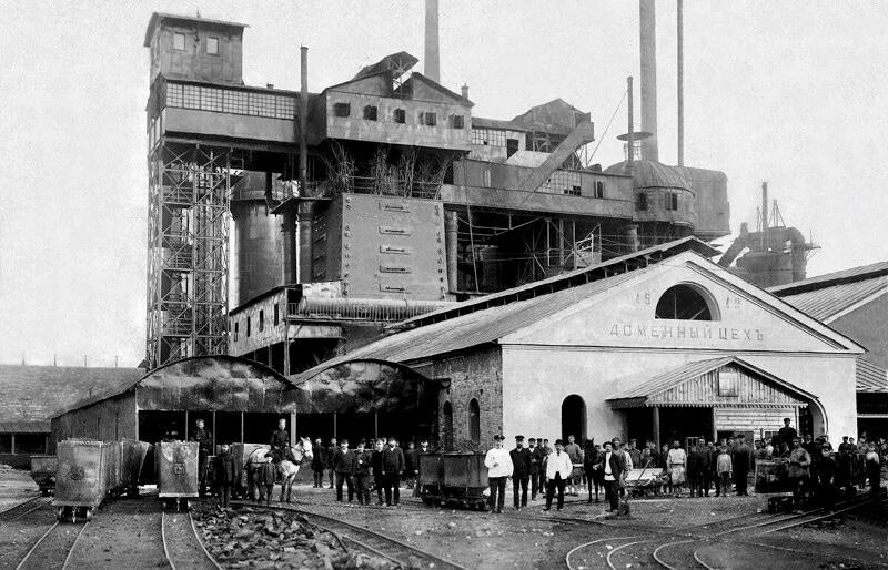 1914 год, Уфимская губерния, г.Миасс. Доменный цех Саткинского казенного завода.