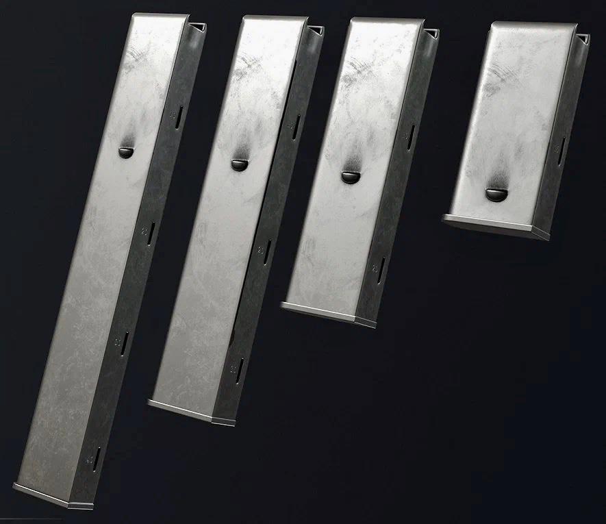 Магазин имел индикаторы наличия патронов - четыре прорези, рассчитанные на 10 - 20 - 30 -40. Кроме того, "пользователям" предлагались магазины на 10, 20 и 30 патронов.