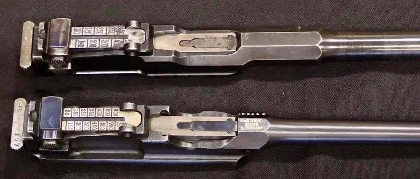 Ствол со ствольной коробкой траншейного карабина Маузера (вверху) и обычного С96. Вид сверху.