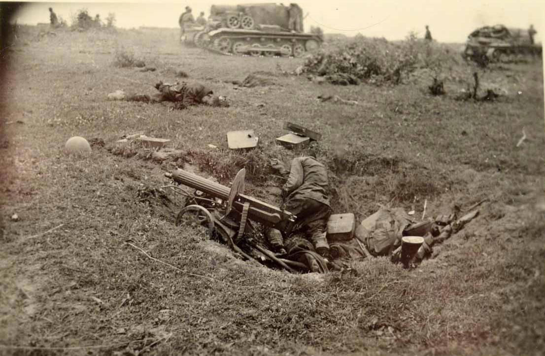 Пулеметчики со станковым максимом. На заднем плане какие-то поделки немецкие на базе ПыЦы-1