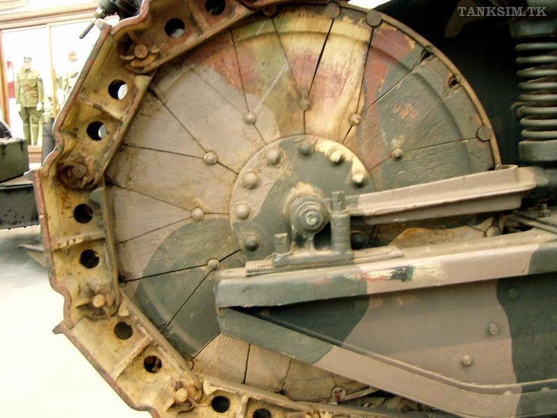 Автор: Николай БергОтчетливо видное деревянное колесо танка Рено ФТ. Потрескалось от времени.