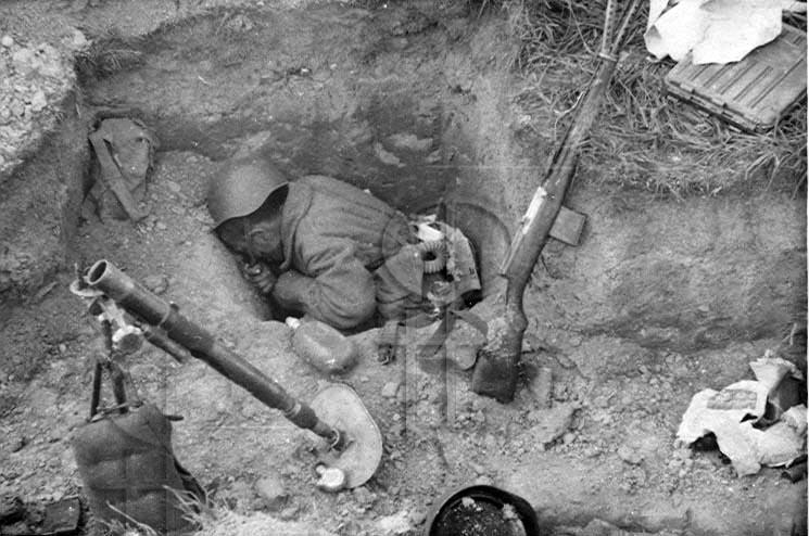 В одиночной ячейке. Основательный был человек - все разложил как удобно чтоб было - и связки гранат и РГД...