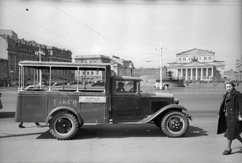 1935 год, Москва. Такси на площади Свердлова. Автор: Эммануил Евзерихин.