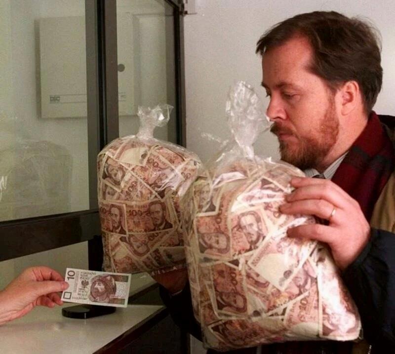 1995 год, Польша. Деноминация. Десять новых злотых вместо 10 000 старых.