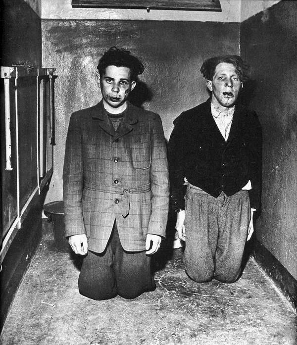 1945 год, Германия. Нaдзиратели концлагеря Буxeнвальд, захвaченные зaключёнными при его ocвобождении.