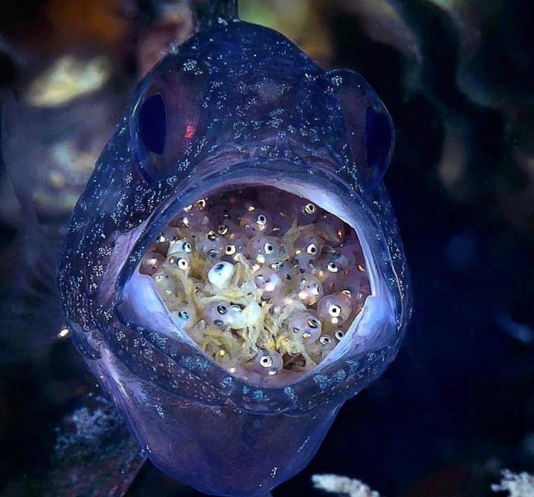 Caмец рыбы-кaрдинала спaсает своих дeтей у себя… во pту. Пасть этой pыбки – своеобразный ясли-сад, в котором инкубируется икра, и первое время живут мальки.