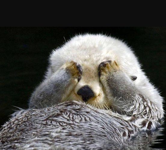 Выдра закрывает глазки ручками, чтобы ей не мешал дневной свет и она могла поспать.