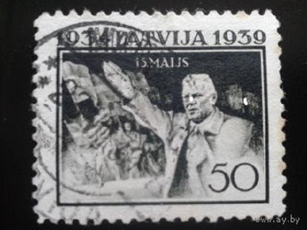 Изображение К. Улманиса на почтовой марке 1939 г.