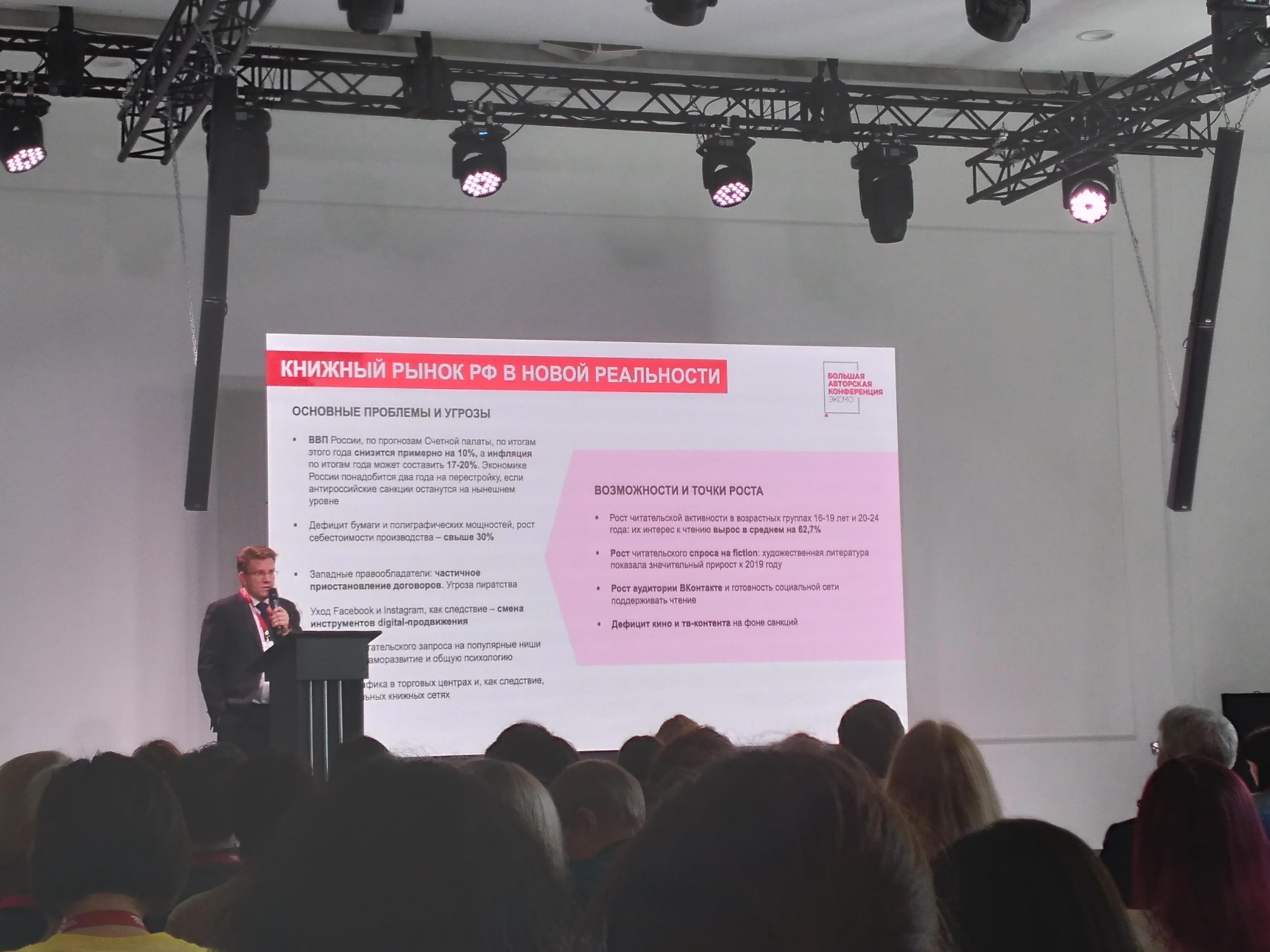 Автор: Алексей ВязовскийПобывал вчера на авторской конференции Эксмо, послушал умных людей, пообщался с коллегами. С рынком книг все пучком, апокалипсиса не наблюдается. Инфляция, конечно, на ценах скажется, но не критично. Из наблюдений, 2/3 зала - прекрасный пол. В топах продаж тоже женщины. Самая продаваемая книга Эксмо за 1 кв. и в бумаге и в электронке - "Лето в пионерском галстуке". Две писательницы, ностальгия по СССР, все дела... С нашими жанрами тоже все хорошо. Продажи фэнтези и фантастики выросли за 1 кв. на 7%.