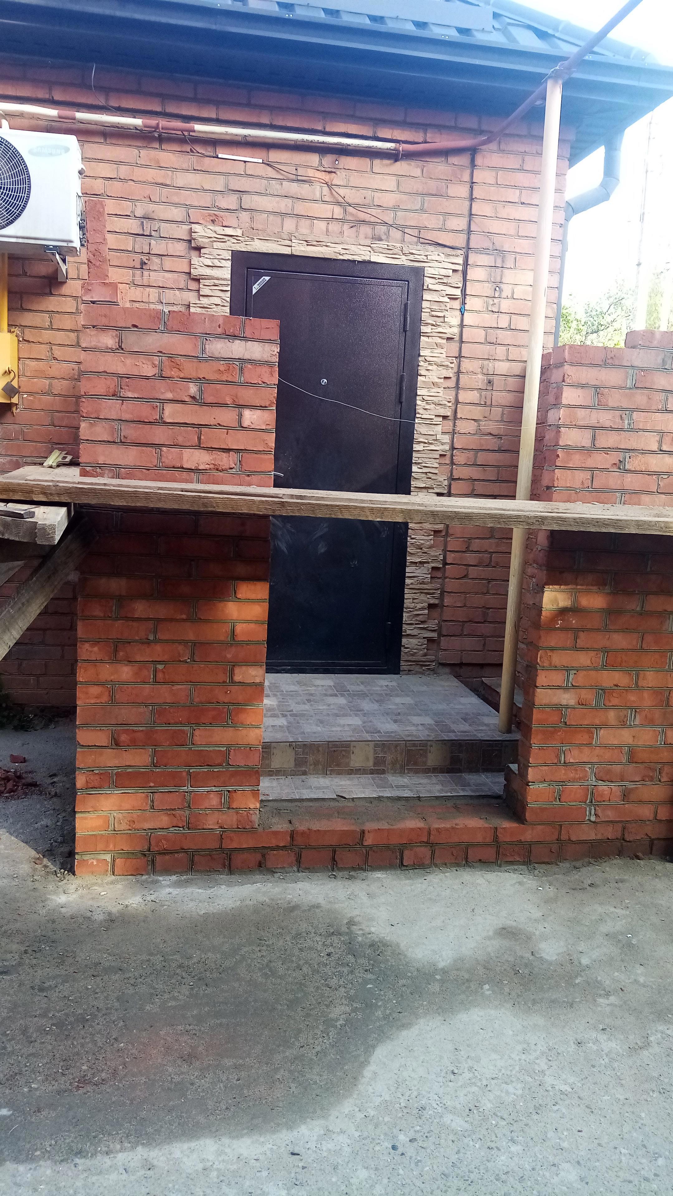 Пристраиваем небольшой холодный коридорчик к дому. Пока стоят леса все, кто решат к нам зайти будут вынуждены низко поклониться при входе. Совсем как во дворце у какого - нибудь падишаха. Но и сами приходится постоянно кланяться. Ибо каменщик хоть и кладёт кирпич очень аккуратно, но работает крайне медленно, вот и приходится терпеть неудобства.