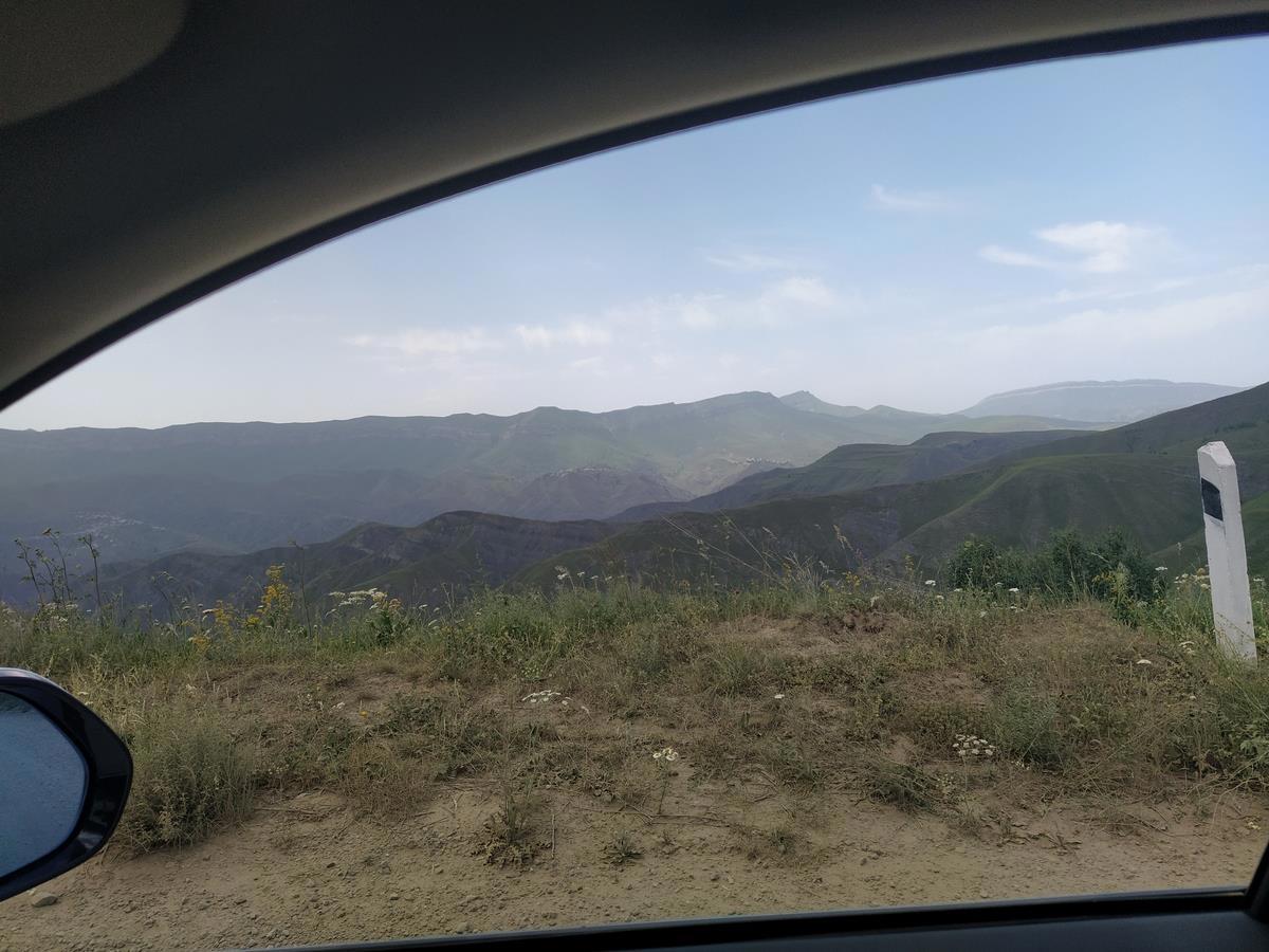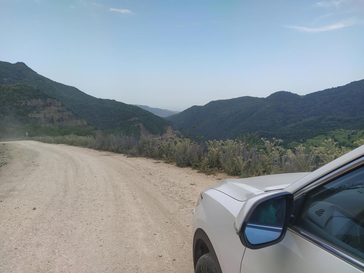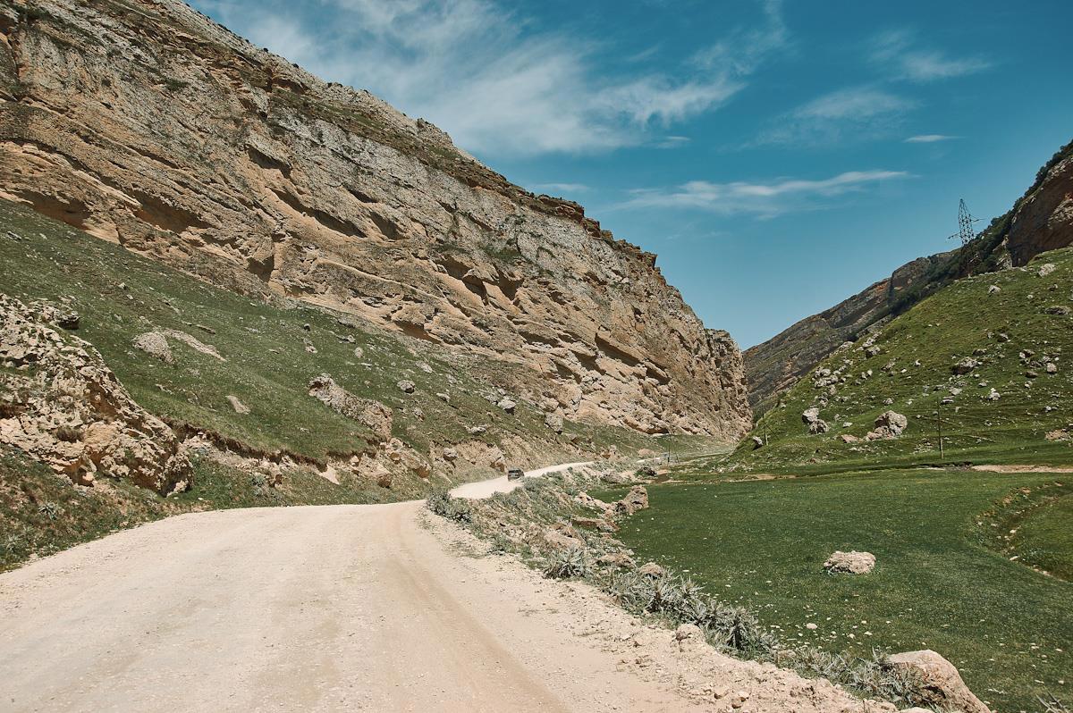 Да и горы становятся все интереснее, но внезапно исчезает асфальт. По пути такое уже случалось, проезжаешь короткие участки по грейдеру и снова попадаешь на асфальтированное покрытие, но сейчас мы лишились его на три с лишних часа. Так что учитывайте, что по означенной дороге лучше ехать на высокой машине и лучше с полноприводом.