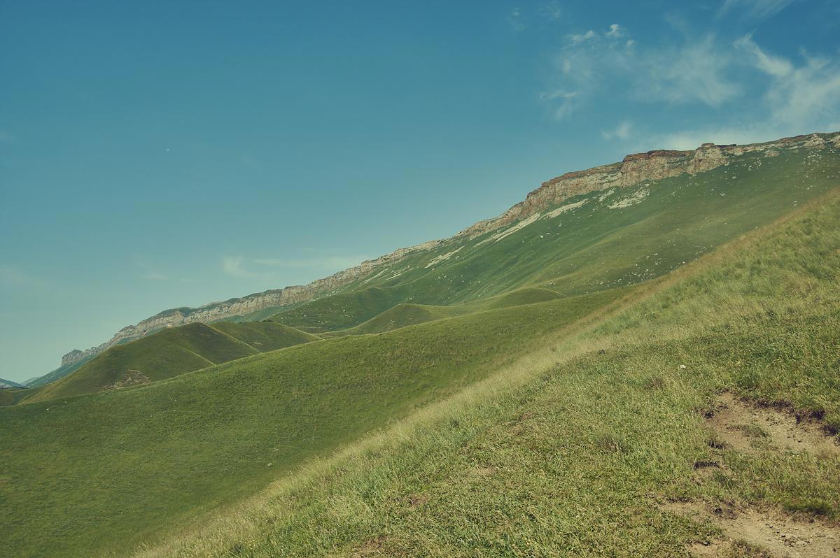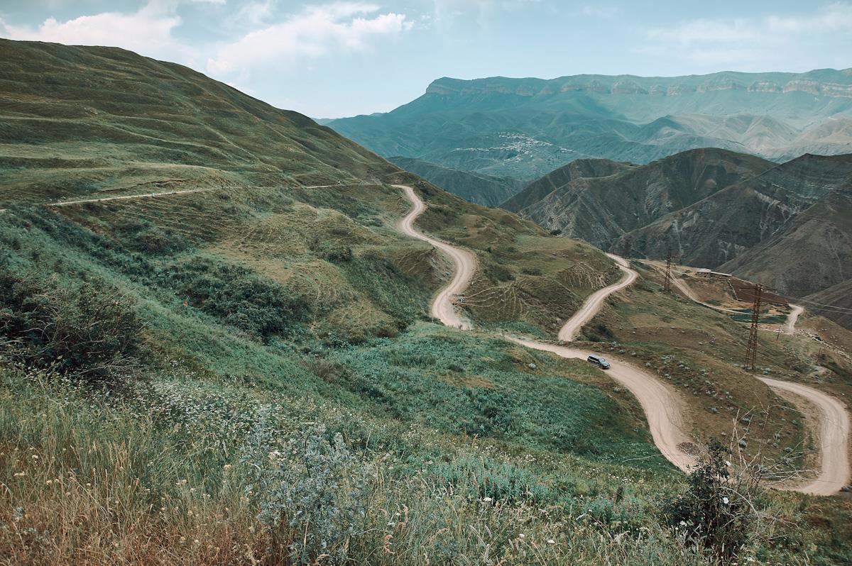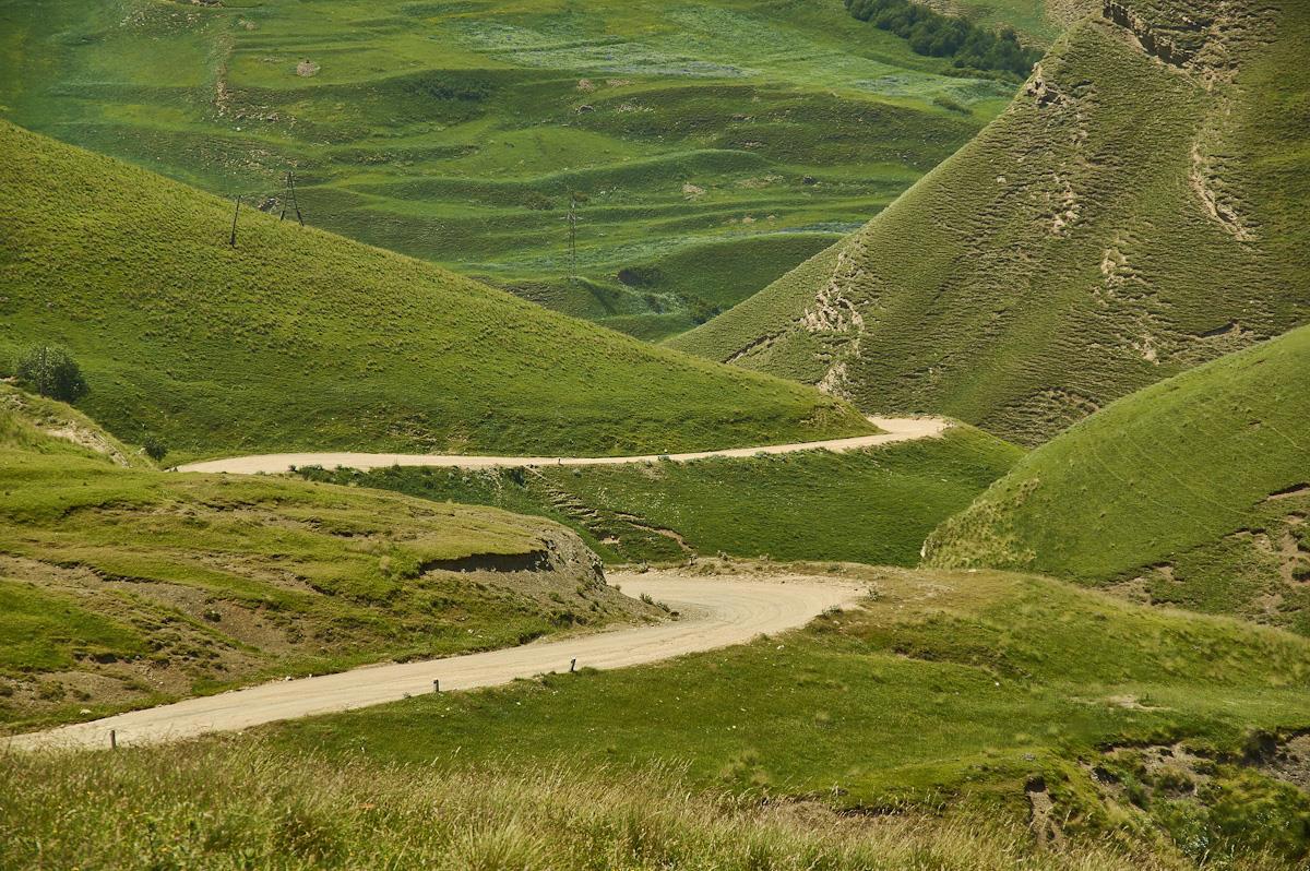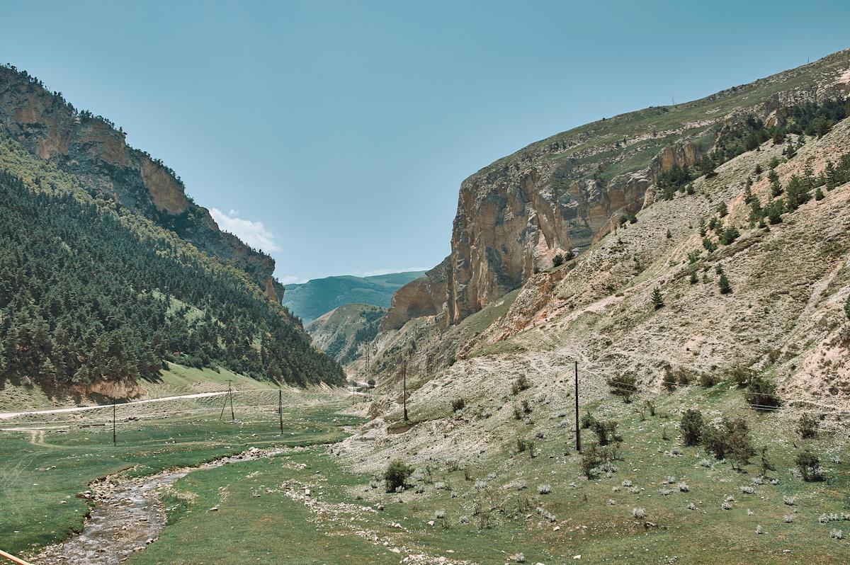 Да и горы становятся все интереснее, но внезапно исчезает асфальт. По пути такое уже случалось, проезжаешь короткие участки по грейдеру и снова попадаешь на асфальтированное покрытие, но сейчас мы лишились его на три с лишних часа. Так что учитывайте, что по означенной дороге лучше ехать на высокой машине и лучше с полноприводом.