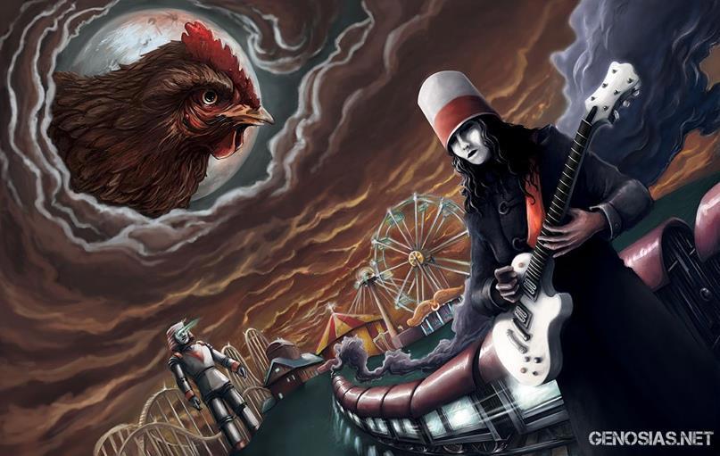 Удивительно способный гитарист и бас-гитарист демонстрирует пост-Гилбертовскую скорость и точность, отшлифованную очень необычным чувством гармонии. Его психотронная, демоническая игра очень отдалена от клише классического метала и рока. Талант, достойный внимания, также известен как «Buckethead»