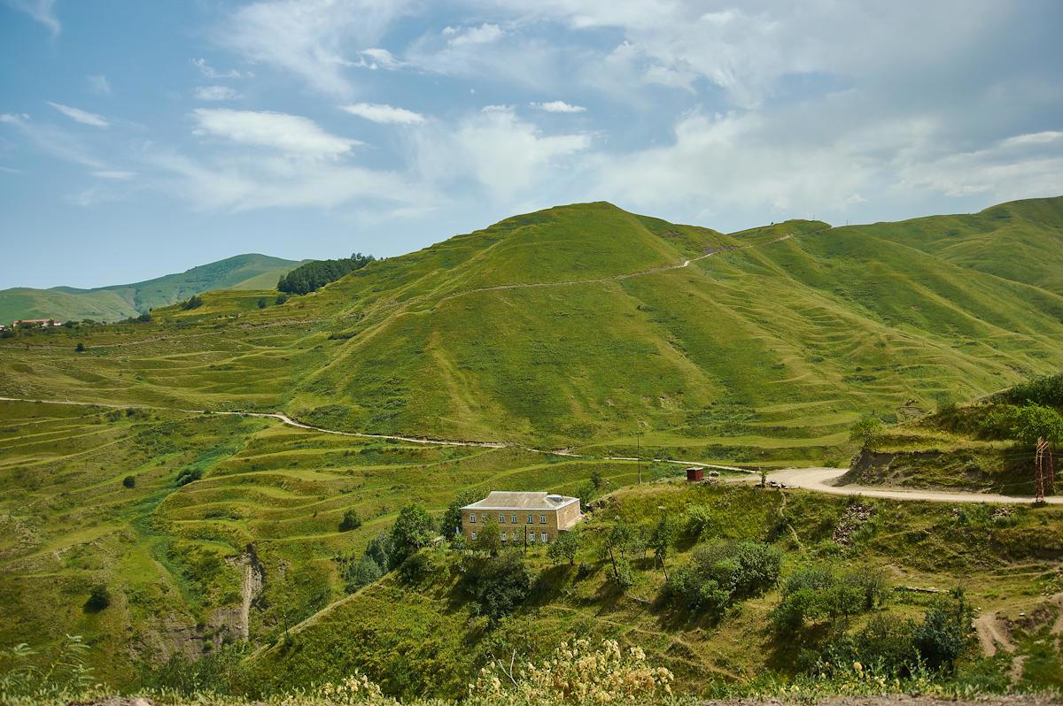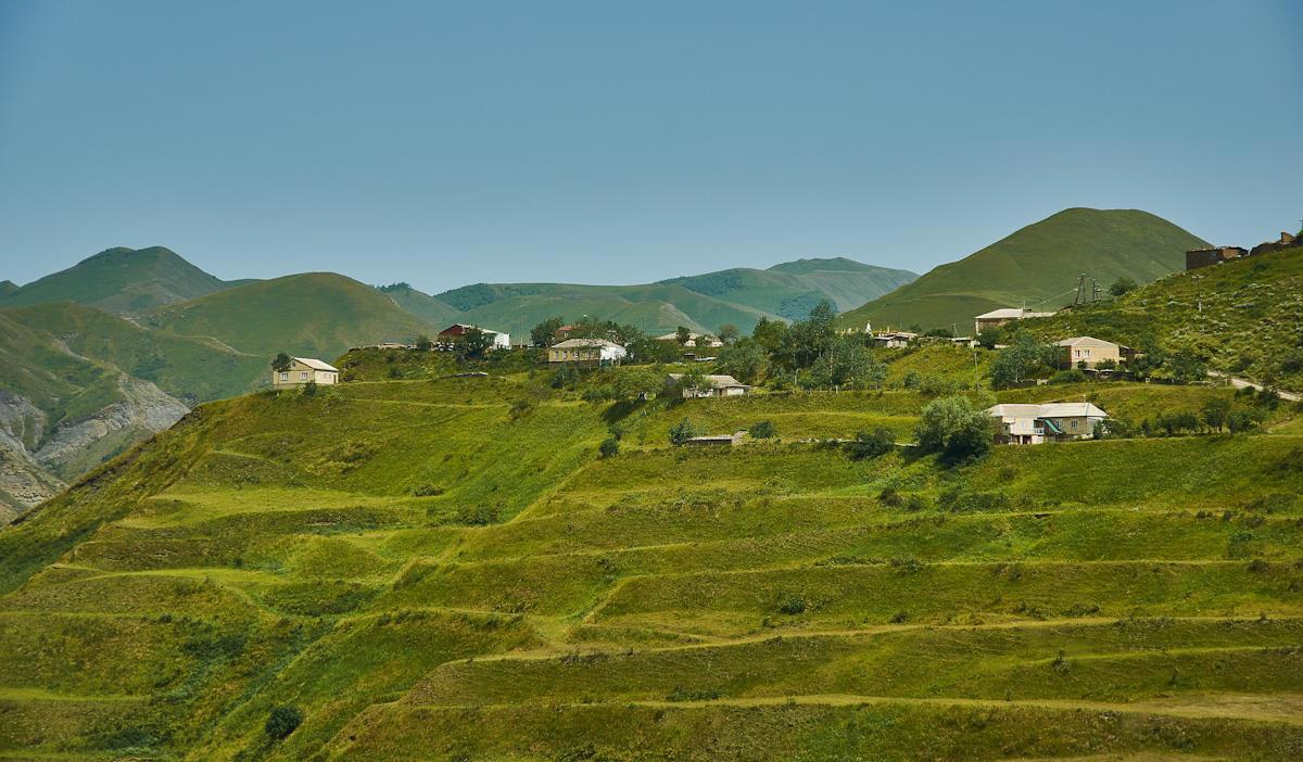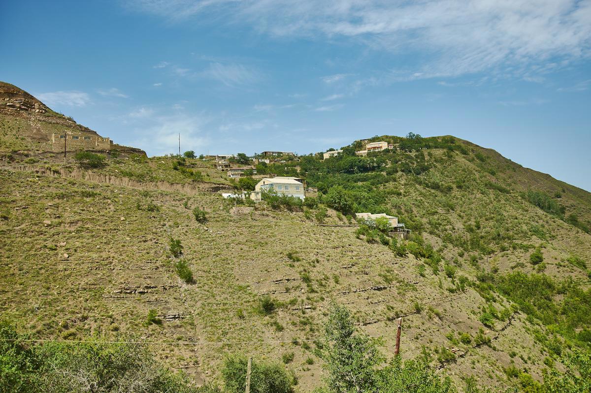 Поселки, аулы  просто одиночные дома. Даже глубоко в горах Дагестан довольно плотно населен. Особенно по сравнению с нашим Севером или Калмыкией.