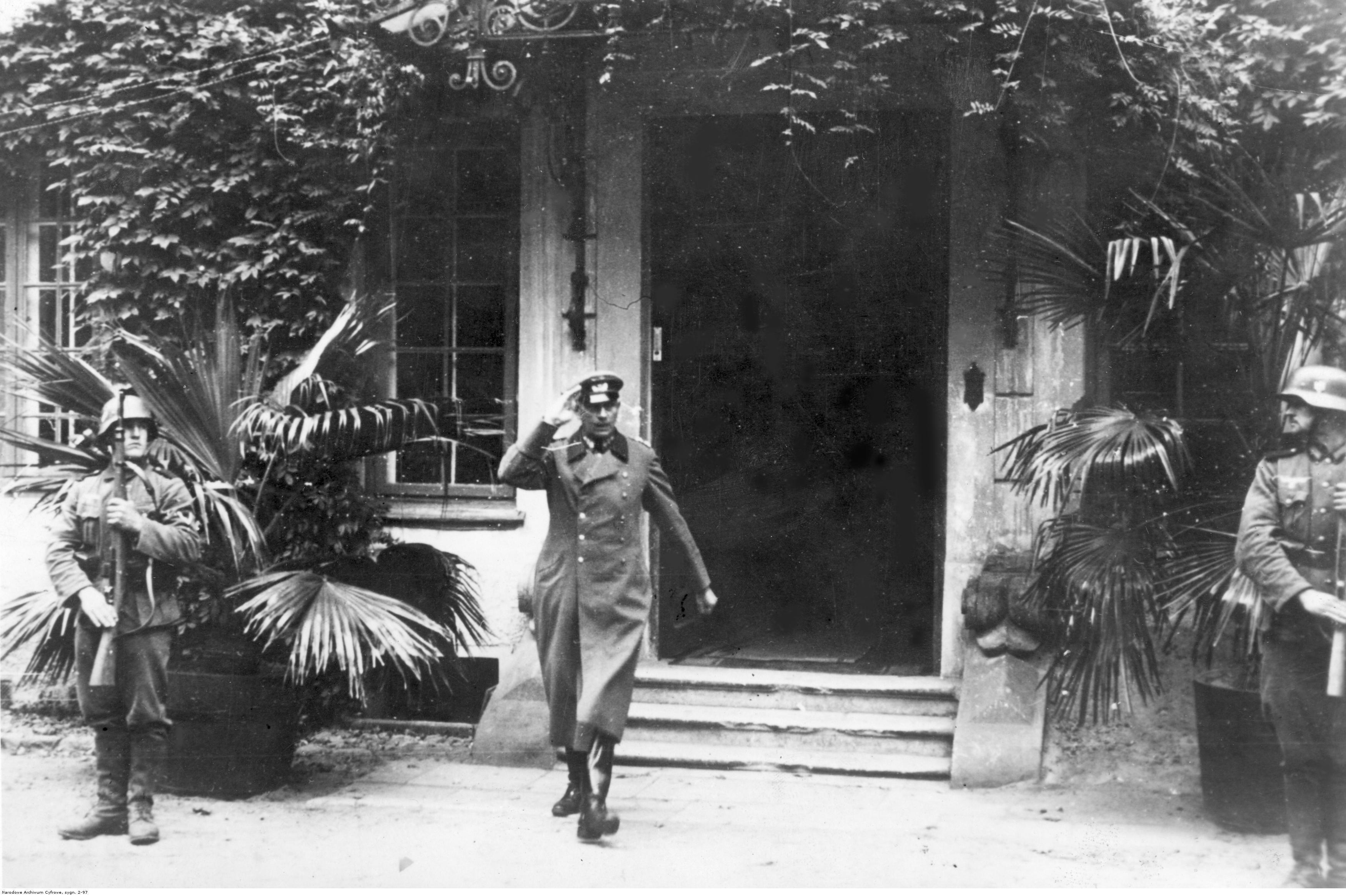 Генерал Адольф Штраус покидает дворе после подписания капитуляции Модлинской крепости.