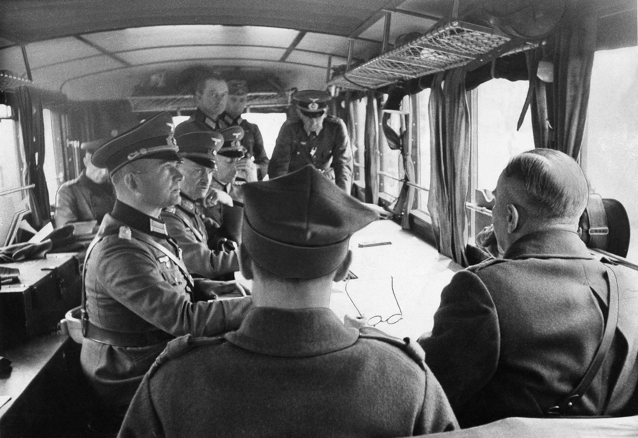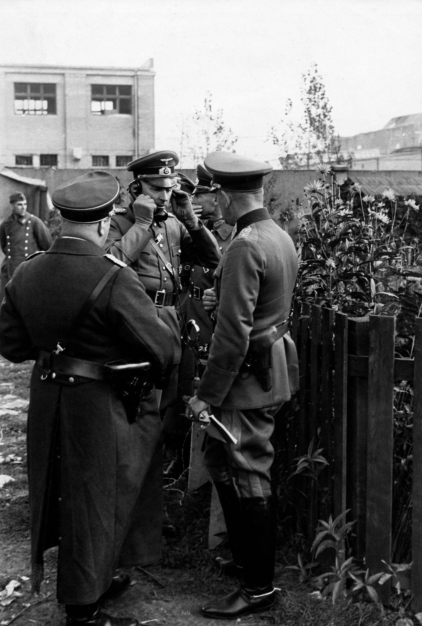 Переговоры о капитуляции на заводе Skoda-Motor в Ракове недалеко от Варшавы. Генерал Йоханнес Бласковиц (главнокомандующий 8-й армии) и польские офицеры.